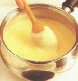 Custard 1. Measure 25g (two tablespoons) of custard powder in a bowl. 2. Add 1/4 cup milk from 500 ml milk to make a smooth paste. 3. Boil the remaining milk with three heaped talbespoons of sugar. 4. Remove from heat, add the paste and cook again for two to three minutes, stirring continuously to avoid burning. Let it cool & your delicious custard is ready.