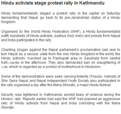 Nepal should remain secular. This is a need of our time. If not, those fundamentalist will use as a way to control politics, governments and lives of other janjatis. Making Nepal secular wipes out any chances for those fundamentalists to take advantage of others like they have done for the last 200 years.
