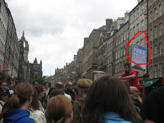 Look at the buildings. When I captured this snap, I kept few things in mind. Buildings (main focus), curious heads/crowd/ tour guide in action, and the most importantly, placard written FREE TOUR..