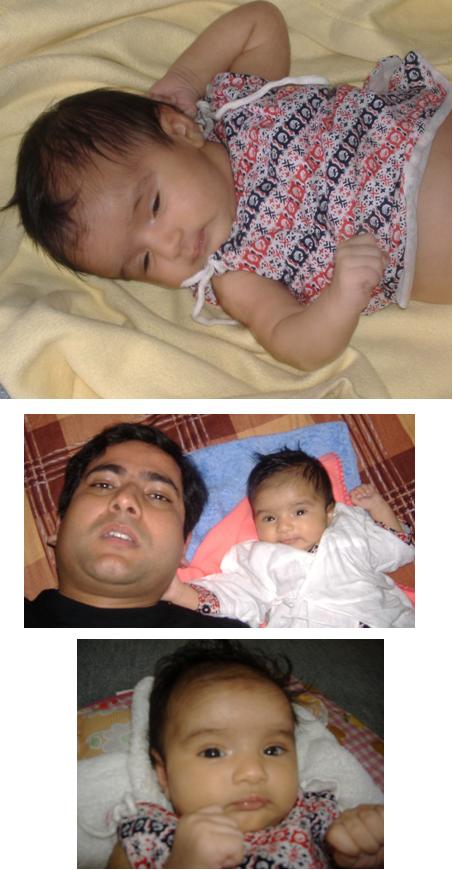 फोटोको कुरा गरीहाल्नु भयो, टाँस्दैछु। (बरु चौतारीमा बढी ब्यक्तिगत कुरा गरेजस्तो लाग्ने हो कि अरु गाम्लेहरुलाई?) पहिलो र दोश्रो फोटा लिँदा आर्या डेढ महिनाकी थिई। पहिलो फोटोमा भर्खर ब्यूँझेर जीऊ तन्काऊँदै, दोश्रोमा बाउको कान निमोठ्न खोज्दै (सबैले ठ्याक्कै बाउजस्ती भन्छन्, हो त?)। तेश्रो हालसालैको हो, फोटो अलिक अँध्यारो आएको छ। मलाई त्यो पहिलो फोटो असाध्यै मन पर्छ।