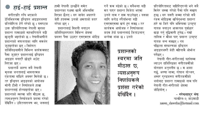 PRASHANT TAMANG'S JUNE 07, 2007 PERFORMANCE {Video Included}