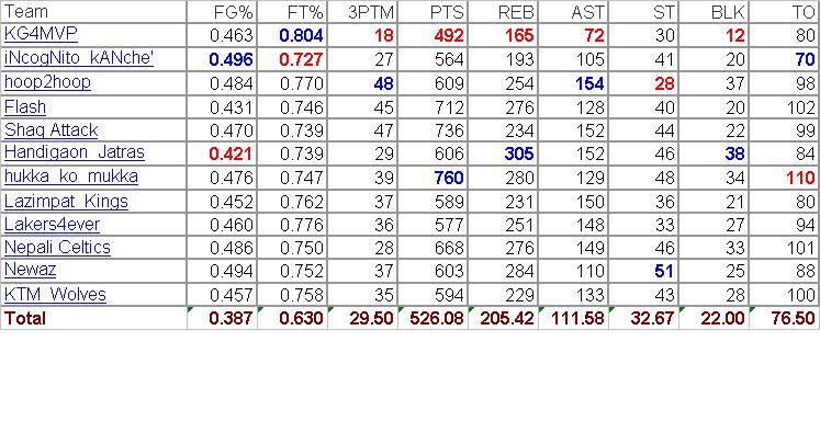 Hey folks, Let us start our discussion here. Those in The Nepali NBA fantasy league. Maybe we can do a bi-weekly update rather than weekly. We will have time to capture more trades/FA acquistions, or other interesting turn arounds in our league. Let's keep it alive. Go CELTICS jai Nepal