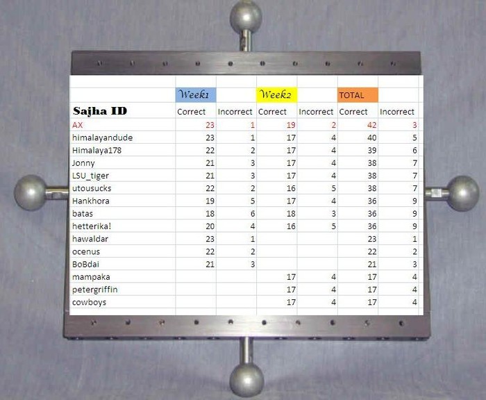 Pick'em Contest LeaderBoard. AX is the winner so far. Jonny bro- I have made corrections for you.