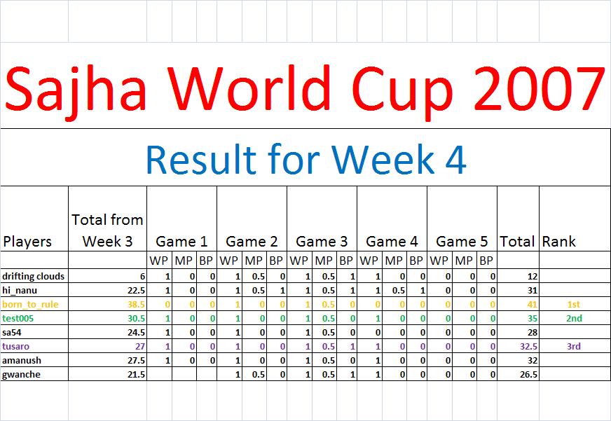 Turbine, Hukka_nepali, proudnepali, redsox_patriots, and Casey00 can you please use template that I provided so it will be easier to score :=) Update me with your win-loss I will update it