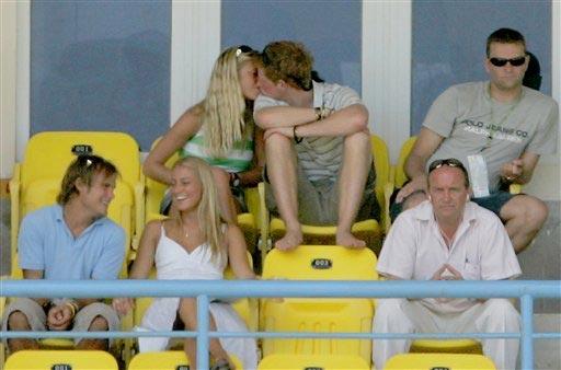 Prince harry caught with his girlfirend Chelsy Davy during australia match.
