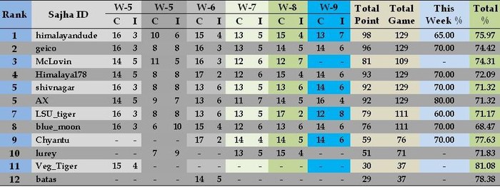 **Week 9 Results**