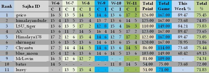 **Week 11 Results**