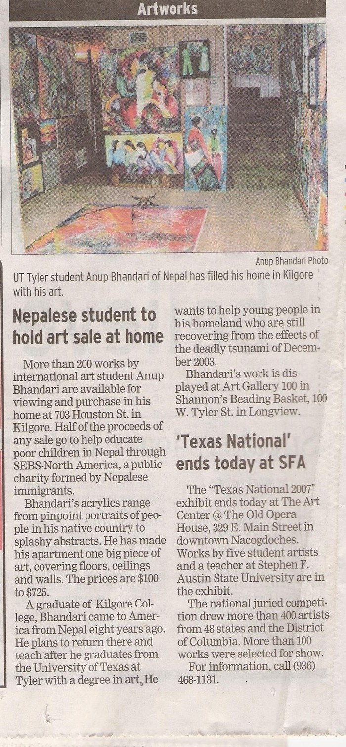 The scanned newspaper article about Bhandari put up by art center says: "He wants to help young poeple in his homeland who are still recovering for the dedaly Tsunami of December 2003."