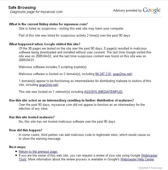 Dear Sajha Reader, MySansar.com has been affected with Worms. There are three malicious script seen on mysansar.com which can easily get important information from your system cookies. If you have the latest Antivirus, it will catch the Worm and quarantine it otherwise you are out of luck. Your important credential may be on the hand of online predators. Please don’t browse mysansar until the scripts are cleaned up from the site. Thanks, sapanasansar